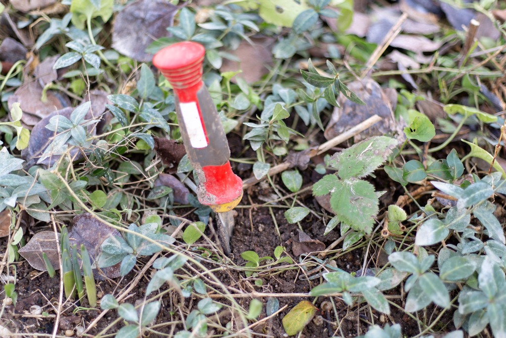Wenn das Beet aus lockerem, unkrautfreien Material wie diesem Schotter hier besteht, wird der Kompost_die Aussaaterde in die obersten Zentimeter eingearbeitet. In schweren Lehmboden nicht einarbeiten, sondern 1-2 cm dick obenauf liegen lassen. Der Grund: Schotter, Sand etc enthalten kaum Nährstoffe, der Kompost ergänzt diese. Lehm hat schon genug Nährstoffe. Hier dient die Aussaaterde als lockeres Keimbett.