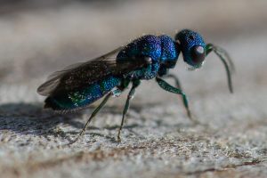 Ausschließlich blau oder blaugrün kann ein Hinweis darauf sein, dass es sich um die Blaue Goldwespe handelt, die an Trypoxylon parasitiert und auf der Suche nach diesen Wespen auch Nisthilfen besucht.