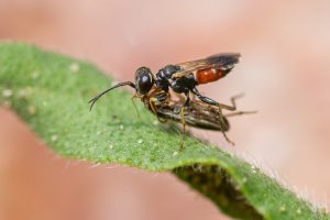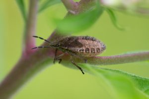 Zum Beutespektrum der Wanzengrabwespe gehört zum Beispiel die Beerenwanze, welche an den Himbeeren und Brombeeren saugt.