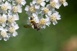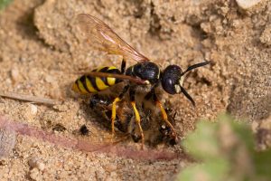 In der Unterfamilie Philanthinae verbergen viele hübsche Blütenbesucher. Besonders häufig ist der Bienenwolf an den Blüten des Gartens anzutreffen. Doch auch Vertreterinnen der Gattung Cerceris sind im Garten durchaus erwartbar. Die Arten nisten in der Regel in offenen, gerne sandigen Bodenstellen.
