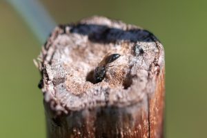 Die Arten der Unterfamilie Pemphredonidae nisten in oberirdischen Hohlräumen und nagen wie Wildbienen auch Gänge in die Schnittstellen von Brombeerranken.