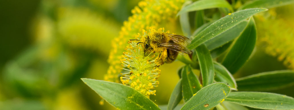 Sehr viele Wildbienenarten in Deutschland sammeln Pollen nur von einer einzigen Pflanzenfamilie, also zum Beispiel nur von Weidenbüschen. Mehr als die Hälfte der Wildbienenarten können mehrere Pflanzenarten nutzen. Doch auch sie sind häufig wählerisch. Daraus folgt: