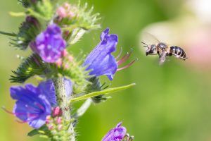 Die Natternkopf-Mauerbiene kommt nur in Gärten mit großen Beständen des Natternkopfs (Echium vulgare)